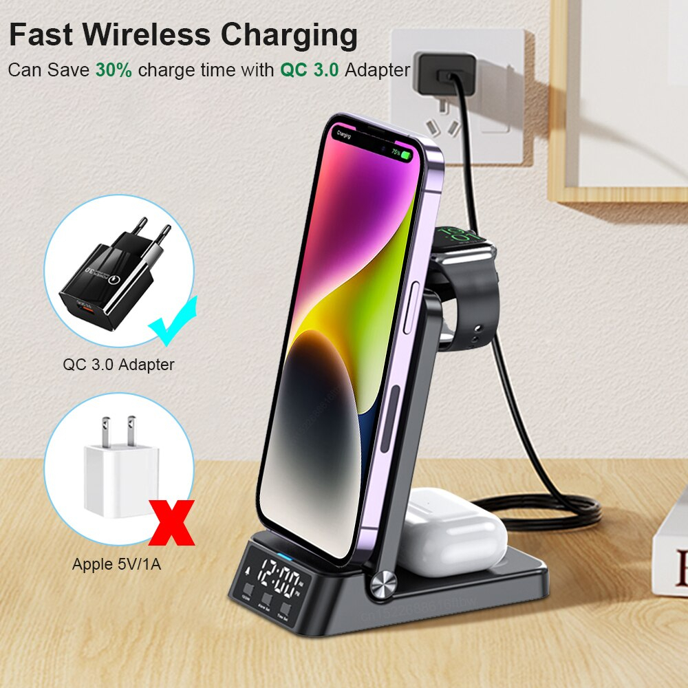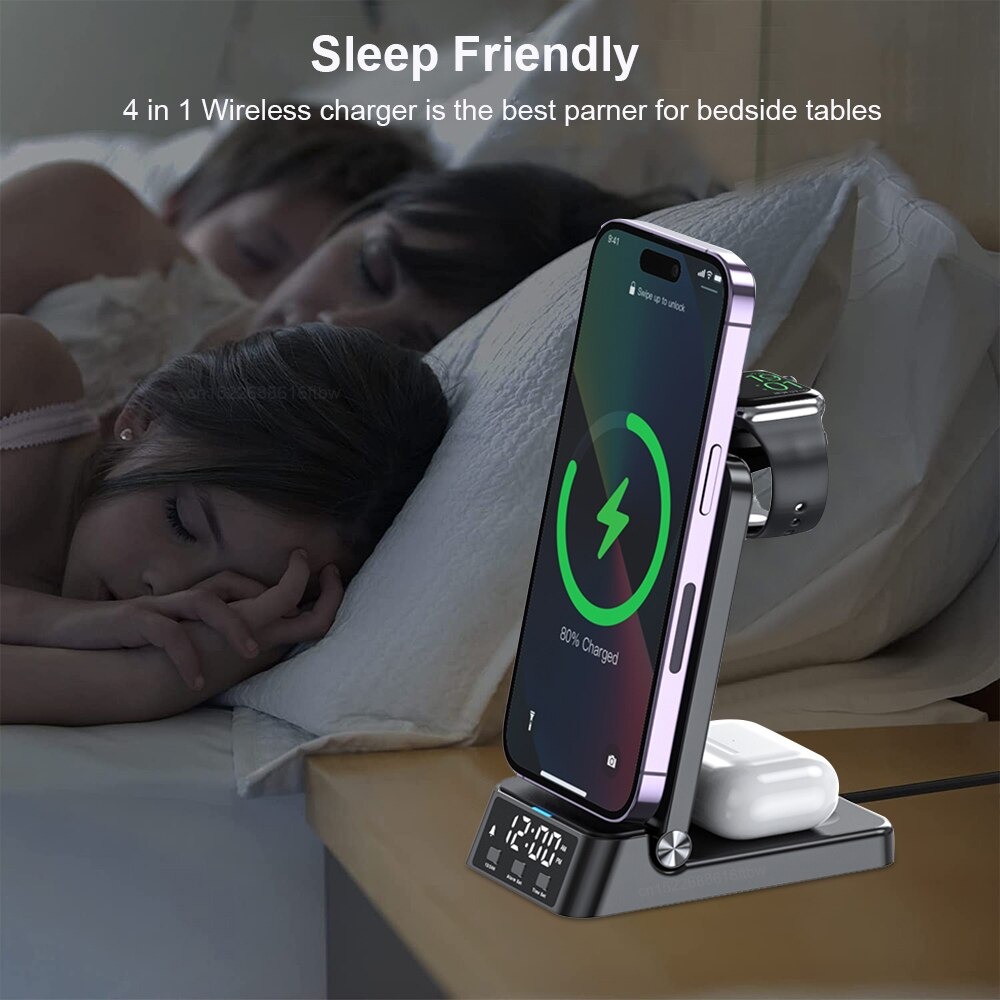 (SG) ALON 4 in 1 Wireless Charger for iPhone 14/13/12/11, Apple Watch 8/SE/7/6/5/4/3, AirPods Pro 2/Pro/AirPods 3/2