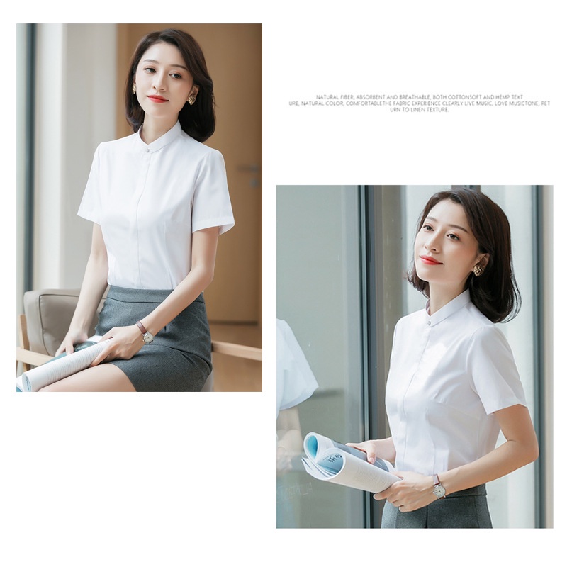 [Ready Stock Free Shipping] Summer Korean Version Solid Color Stand-Up Collar Cotton Temperament Commuter Short-Sleeved Single-Breas