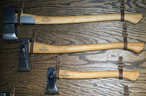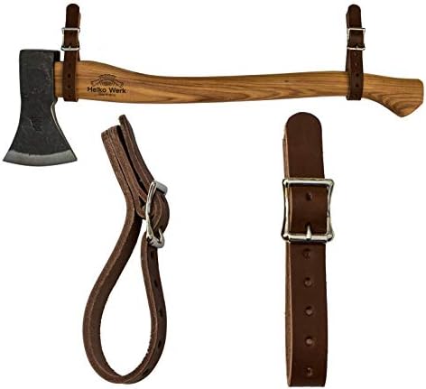 1844 Helko Werk Germany Leather Axe Hangers - Wall Hanging Leather Straps with Adjustable Buckle for Axes, Hatchets, Tools, for Heavy Duty Wall displays - Made in USA (Axe Hangers Brown) #8878A