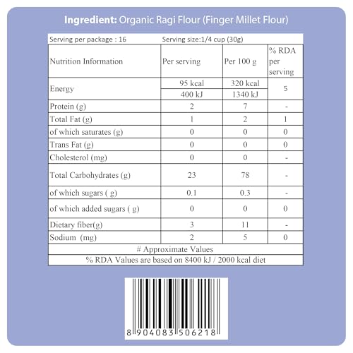 24 Mantra Organic Ragi Flour/Finger Millet/Nachni Flour - Chemical Free & Pesticides Free | Naturally Gluten-Free (500 G (Pack Of 1))
