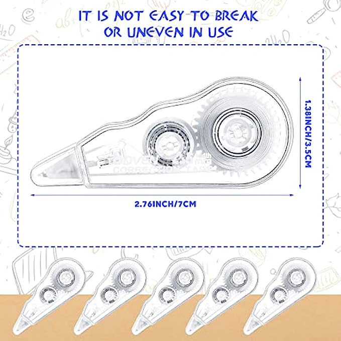 Anti Fracture Correction Tape: Made of reliable material, with firm stickiness, not easy to break the tape, compact shape, not easy to take up space, pencil bags and pockets can be placed anywhere