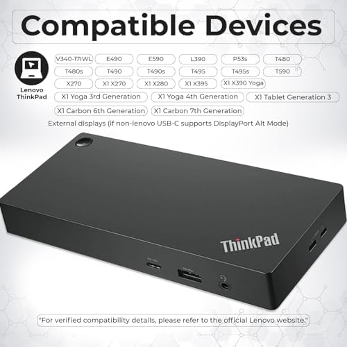 40AY0090US Lenovo Thinkpad Docking Station Dual Monitor Bundle - Supports 4K Display, Thinkpad Dock with AC Adapter + 4K HDMI Cable + 4K DisplayPort Cable + USB C Cable + Microfiber Cloth