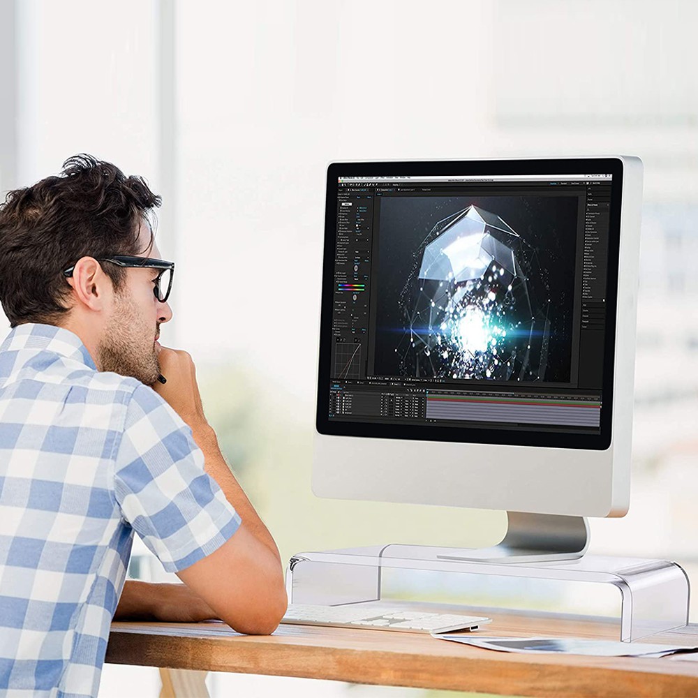 Acrylic Computer Monitor Laptop TV Stand Riser 12MM Thickness