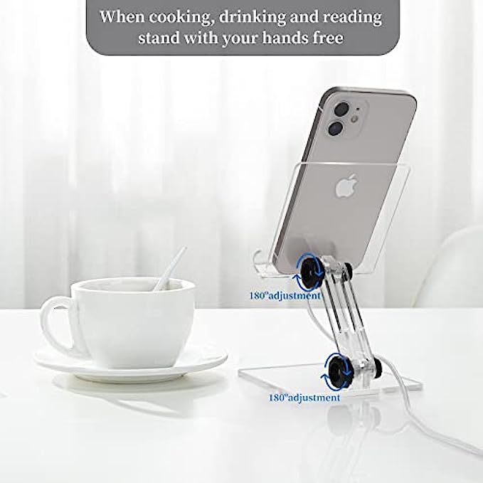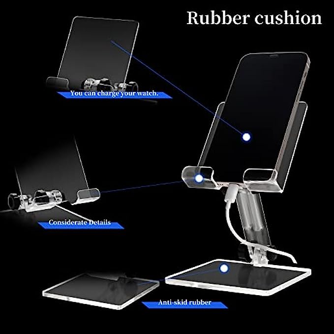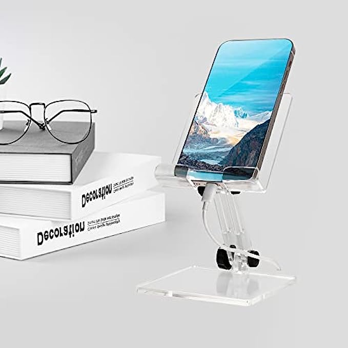 Adjustable Cell Phone Holder, Acrylic Phone Stand for Desk,Compatible with Phone 13 12 Pro Max Mini 11 Xr 8 Plus, Android Smartphone, Pad, Tablet, Desk Accessories