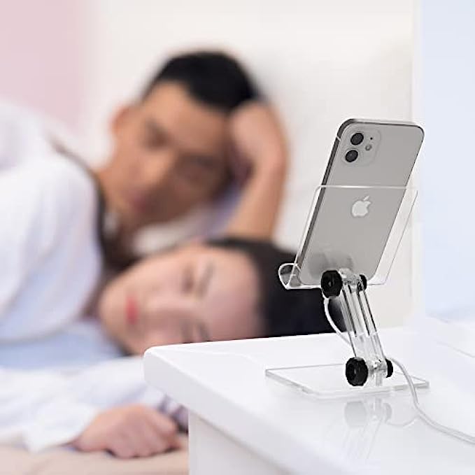 【MAKE YOUR LIFE EASIER】With this lightweight phone holder, you can free your hands and keep you in good condition in the office, kitchen, bedside table, dining table; the charging hole allows you to use Facetime and Youtube while charging. The ideal gift for women, men, students, colleagues and your loved ones!