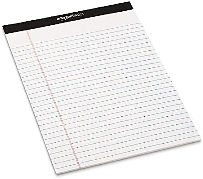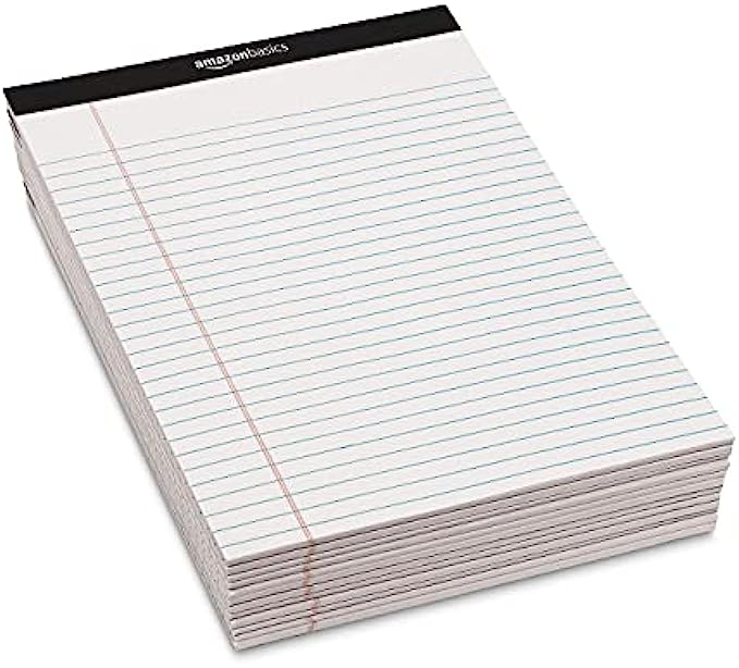 Legal note pad for everyday writing; ideal for home, office, school, or business Includes 12 legal pads, each with 50 letter-sized sheets of standard 16-pound white paper Wide ruled line spacing (11/32 inch) accommodates larger handwriting and easy note reading Perforated top edge allows for easily and neatly removing individual sheets of paper Cardboard backing offers added writing pad support Product dimensions: 8.5 x 11.75 inches (WxL)