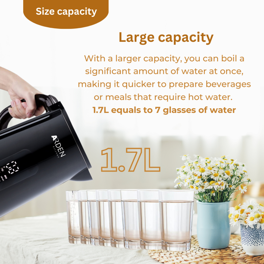 Arden Kitchen 1.7L Digitial Electric Kettle Real-Time Temperatre Screen Display