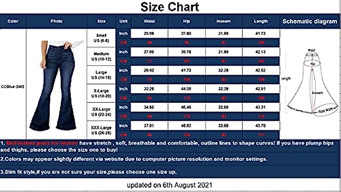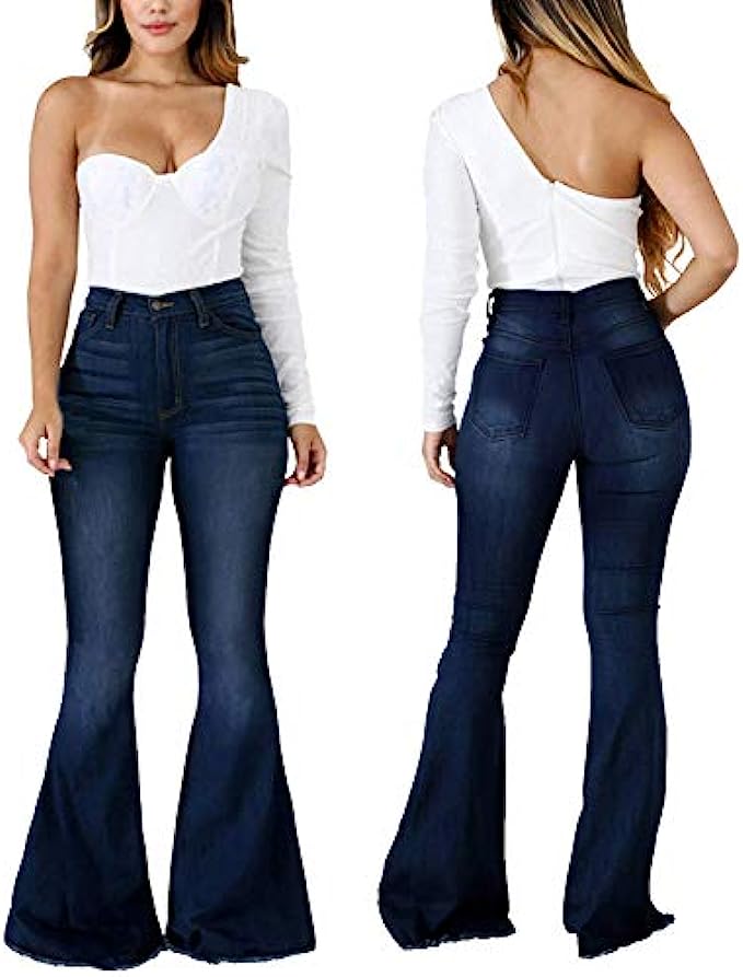 95% Polyester, 5% Spandex Imported Zipper closure Elastic Waist with two pockets at back Bell bottom jeans for women Slim fit Wide flared and frayed hem to complete tretchy and fitted feel All match with blouse,tank top,crop top,shirt,sweater,etc It is comfortable and versatile to wear and suits for most occasions