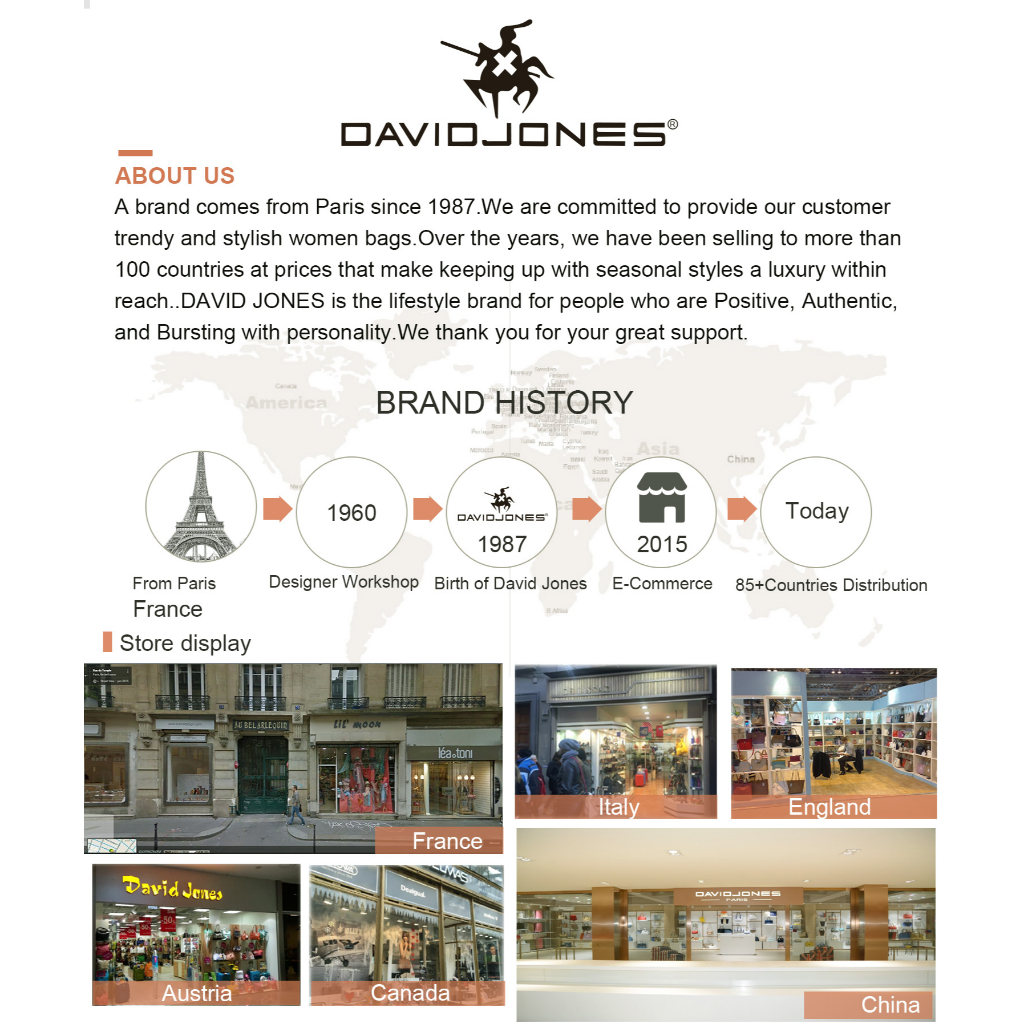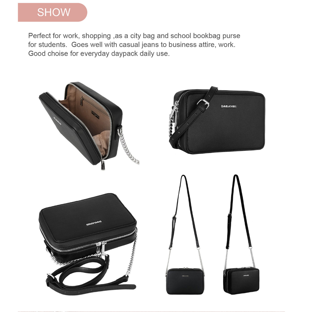 David Jones Paris women shoulder bag pu leather female crossbody bag chain small square bag