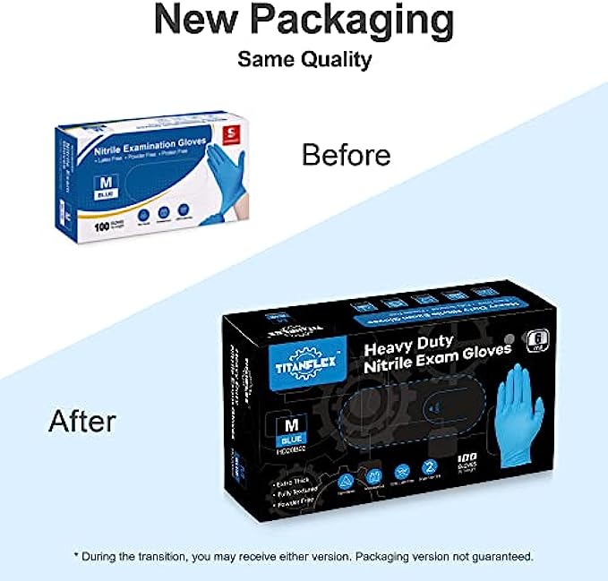 • 6-mil HEAVY DUTY: Our thick nitrile disposable gloves are chemical & puncture-resistant, providing a higher level of hand protection against liquids, greases, & sharp objects. The textured finish provides slip resistance in wet or dry conditions.
