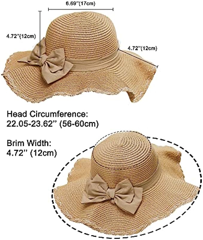 • [ONE SIZE FITS MOST] Style 1 : brim 3.15’’ (8cm), height 4.33’’ (11cm), circumference 21.26-22.83’’ (54-58cm). Style 2: brim 4.72’’ (12cm), circumference 22.05-23.62’’ (56-60cm). One size fits most women, girls and ladies. There is a elastic string that makes it size up better