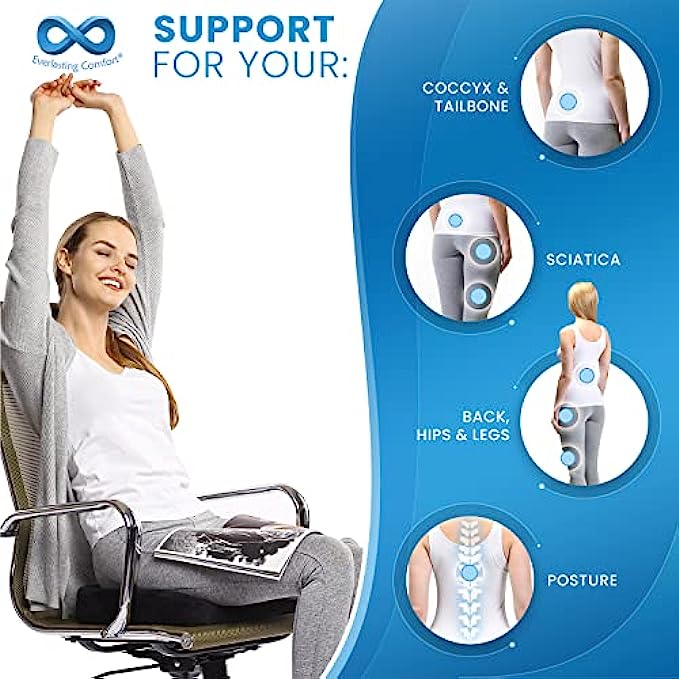 Effective Tailbone Pain Relief Cushion: Designed with an ergonomic "U" shaped cutout, our office chair cushion suspends your coccyx above hard seating surfaces, relieving pressure and improving posture