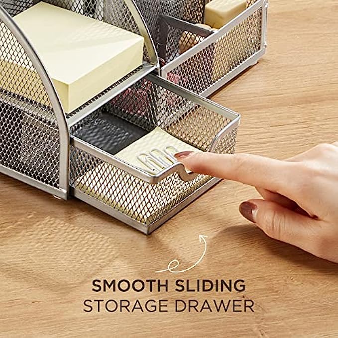 【DURABLE METAL MESH MATERIAL】This desk organizer and accessories are made of high-strength metal mesh material, which is moisture resistant and easy to clean. The sleek and minimalist design of the desk organizer is better for organizing things and decorating your office