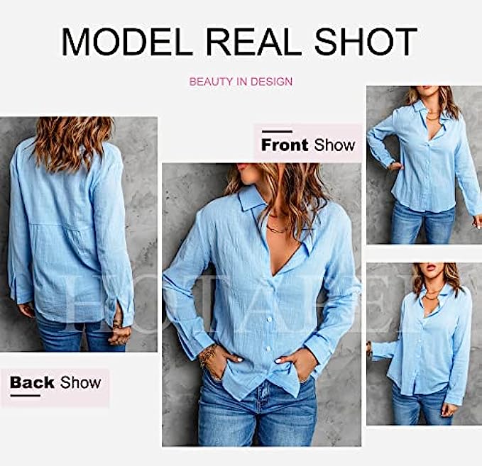 • Fetures:Blouses for women, v neck shirts,solid color blouses and tops for work, long sleeve shirts blouses, linen shirts for women,loose fit tops.