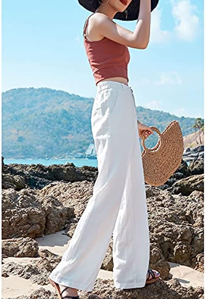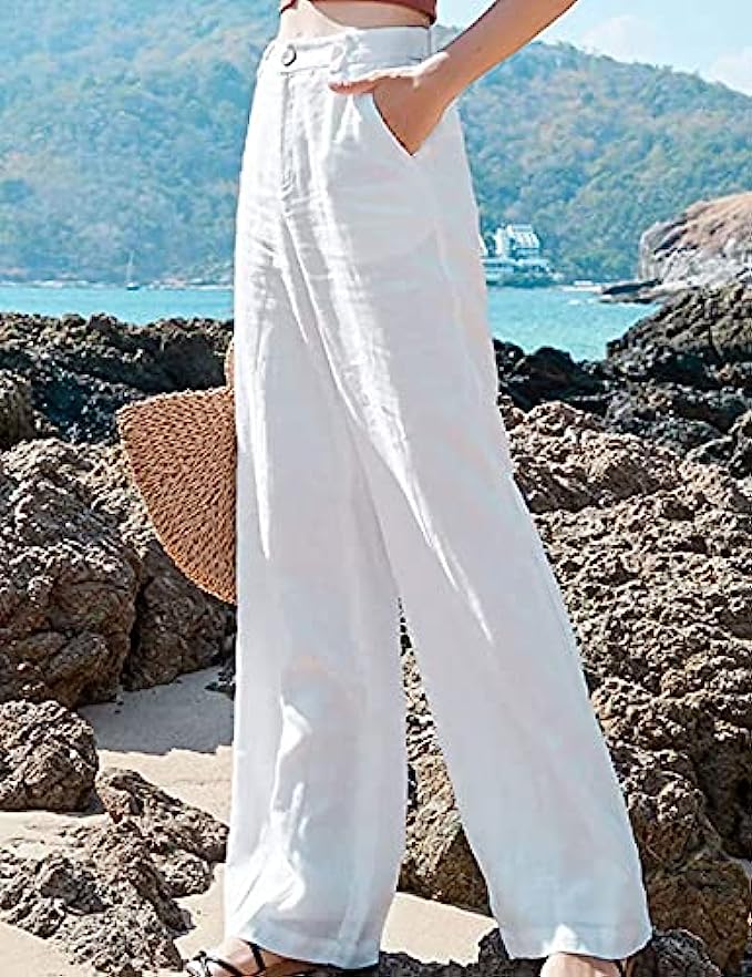 Hooever Womens Casual High Waisted Wide Leg Pants Button Up Straight Leg Trousers