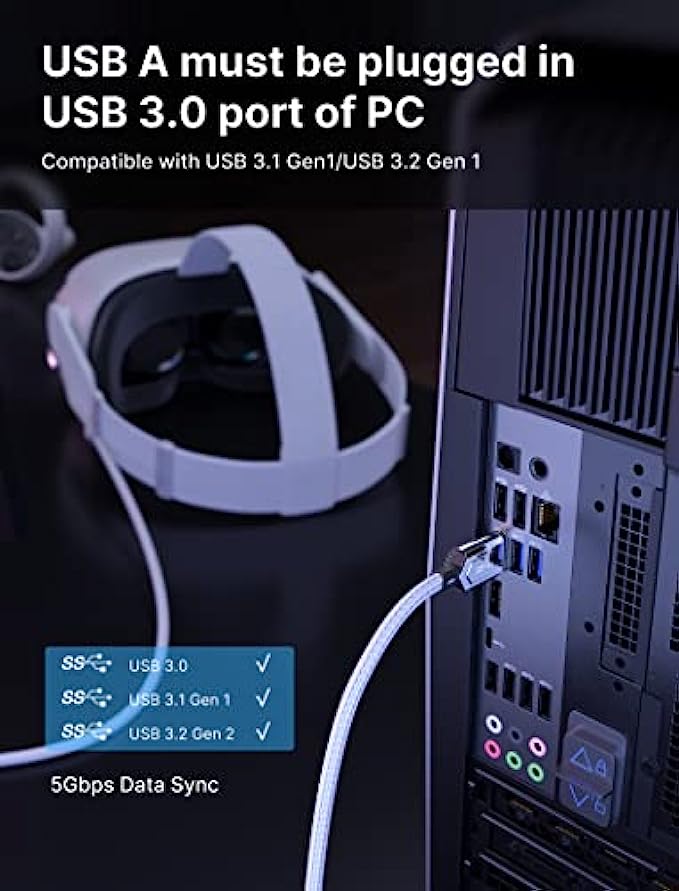 High Speed and Fast Charging: Supports up to 5 Gbps data transfer speed, which allows it to connect Oculus Link Program with no lag, enhancing your gaming experience without interruption or delay. 3A charging speed makes it possible to play and charge simultaneously if the port's output power is enough.