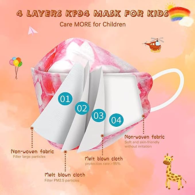 • 【Four-layer Material】: the outermost layer is made of printed non-woven fabric, and the middle layer is made of two layers of melt-blown fabric, which can effectively prevent PM2.5 and protects up to 95%. The last layer is made of skin-friendly non-woven fabric, which fits the face without hurting the skin .