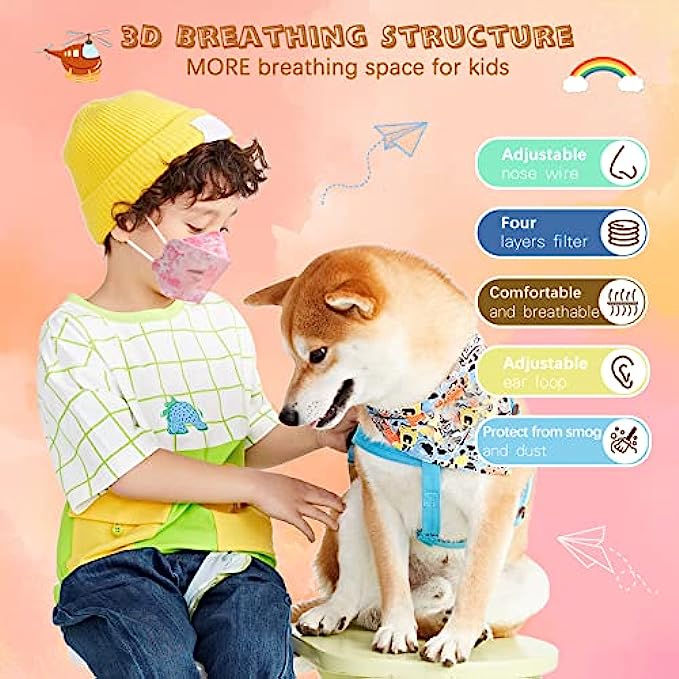 • 【Product Introduction】: kids disposable face masks,The folding specification is :17*7CM, the unfolding is :17*15 CM, four layers of protection, can be close to the face, get the best protection effect, the ear hook is 6CM, the longest stretch is 18CM, and the elasticity is excellent.