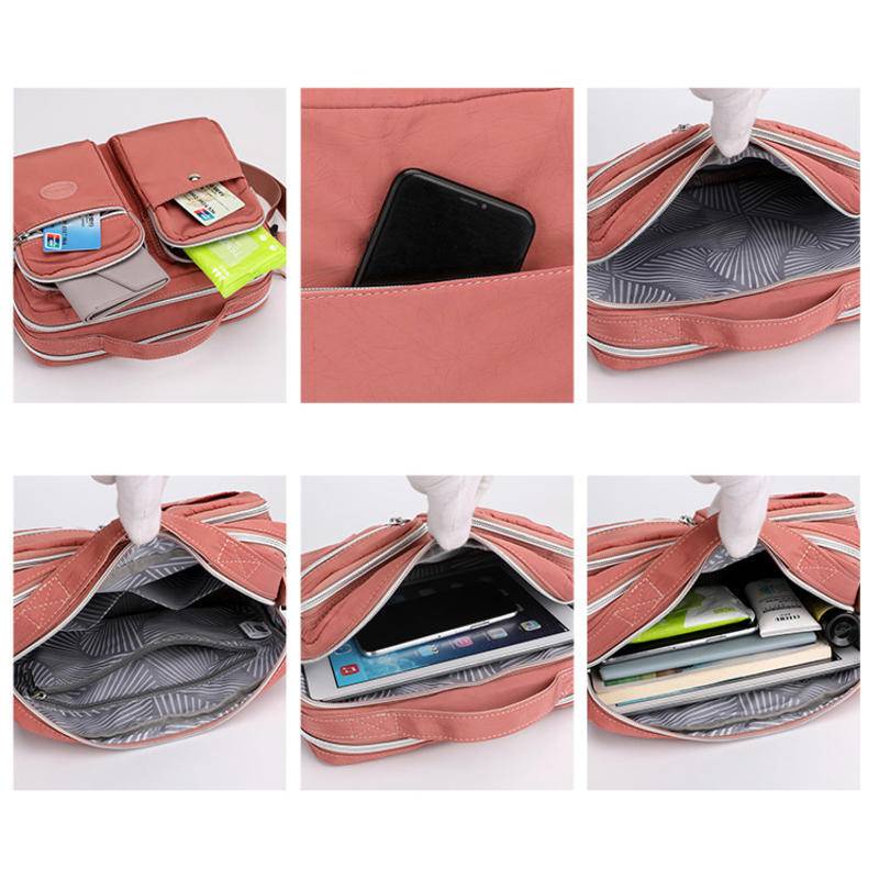 Multifunctional Waterproof Tote Handbag Multi-Layer Storage Design Large Capacity Fashion Shoulder Bag Water-Repellent Nylon Fabric Cross-Body Bag Outdoor Leisure Commuter Busi