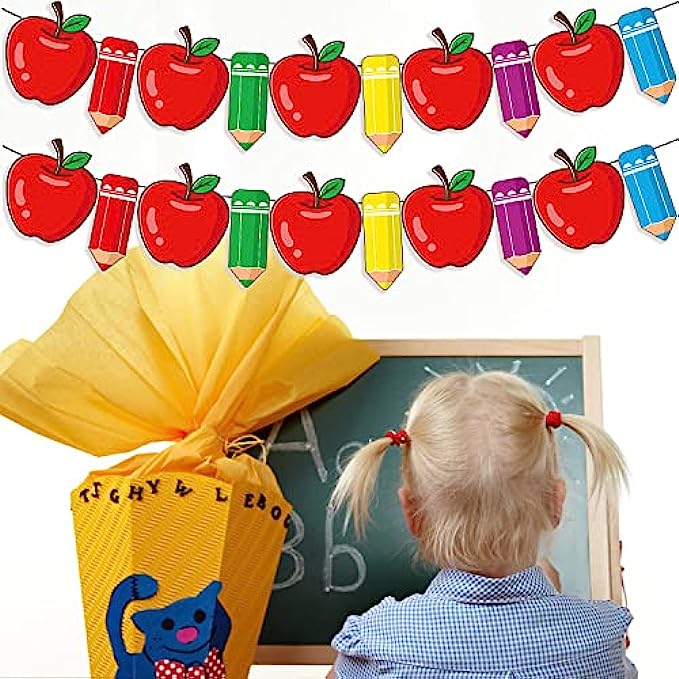 ✏️Materials and Size: The Pencil and Apple Banner set is is made from Grade A quality materials, so it is durable, sturdy and will very long lasting. Each card height approx is 6 inch. Perfect size is very suitable for photo background decorations.