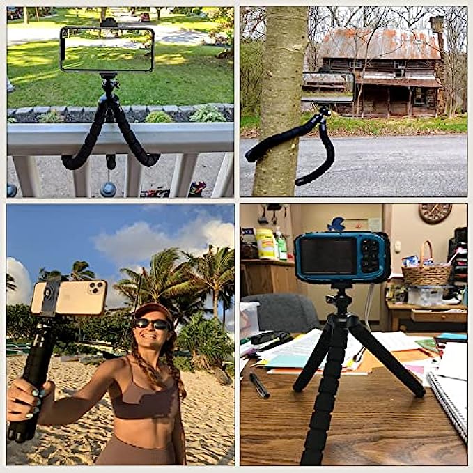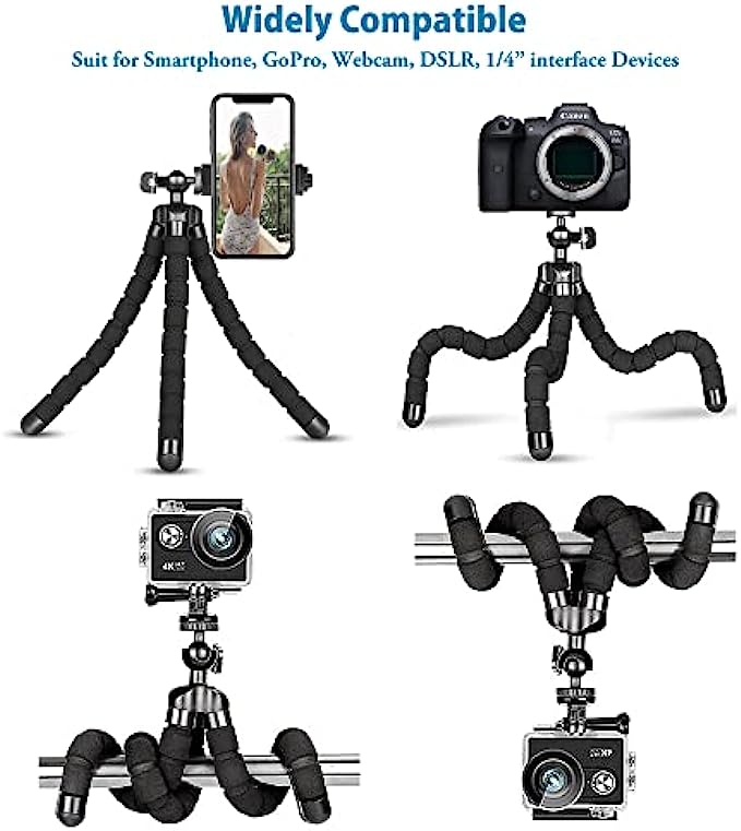 【Flexble Tripod】Design of OCTOPUS legs can be twisted into any shape, wrap it on tree, bike, lamp, chairfor extra variety in shot compositions and framing
