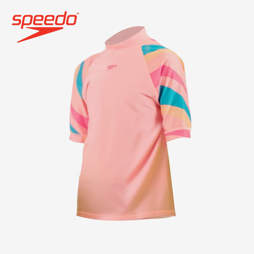 Speedo Kids Girl Swimwear - Printed Short Sleeve Sun Top - Peach - 8-1173114499