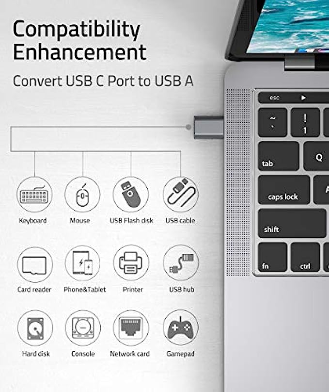 Compatibility: This USB C to USB adapter is compatible with MacBook Pro after 2016 and MacBook Air after 2018 and most of the laptops, tablets and smartphones with a USB Type C port