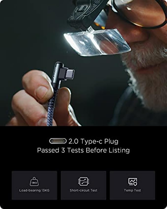 [Enhanced Cable Durability] USB to USB C Cable has electronic safety certifications that comply with appropriate standards, it built-in laser welding technology, which ensure the metal part won't break. The longer SR anti-break design enhances the durability of the cable. With 40,000+ times bend test, the flexible and durable double-braided nylon type C cable longer service life and will never rupture.