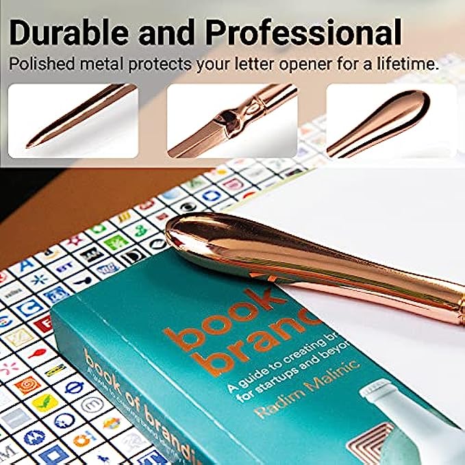Uncommon Desks Rose Gold Letter Opener Knife - Smooth Metal Plated Envelope Opener - Ergonomic Rounded Handle for Comfort - Home and Office Mail Supplies - 1 Pack