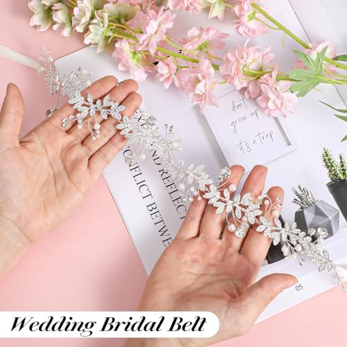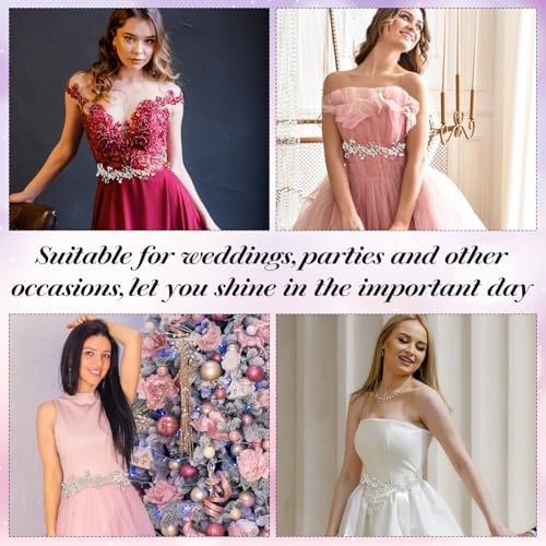 Bridal Wedding Dress Belt Rhinestone Wedding Waist Belts Sparkly Crystal Pearl Dress Sash for Women Dresses