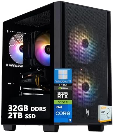 Nitro 60 Gaming Desktop Computer | Intel 20-Core i7-14700F | 32GB DDR5 2TB SSD | NVIDIA GeForce RTX 5060 Ti 16GB GDDR7 DLSS4 (Up to 759 AI Tops) | DisplayPort Wi-Fi 6 Win11 Pro w/DLCA Accessory