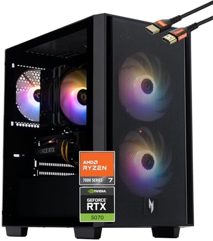 Nitro 60 Gaming Desktop, AMD Ryzen 7 7700, NVIDIA GeForce RTX 5070 with 12GB GDRR7 VRAM, Black,Window 11,W/HDMI Cable (Windows 11 Home, 32GB RAM | 2TB PCIe SSD)