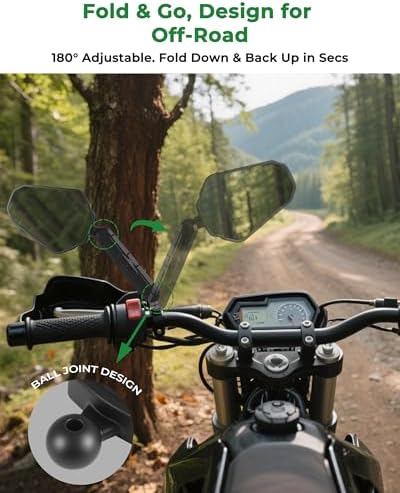 Sponsored Ad - Adventure Motorcycle Mirrors, VOUTRAK Universal Convex Rear View Mirror, M8 M10 Bolt & 7/8" Handlebar Mount, Foldable, Ball Joint, 360° Adjustable, Anti-Vibration for Dirt Bike, ATV, Sc