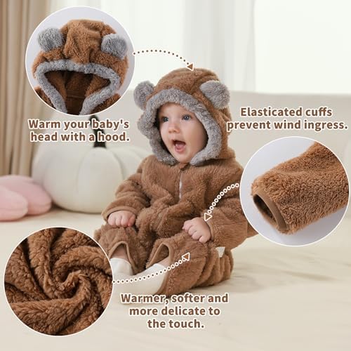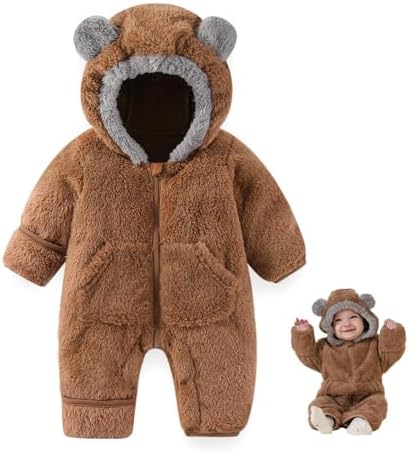 Newborn Baby Bear Outfit Suit With Fold-Over Mittens Footies Girls Boys Winter Fleece Clothes Hooded Romper Snowsuit