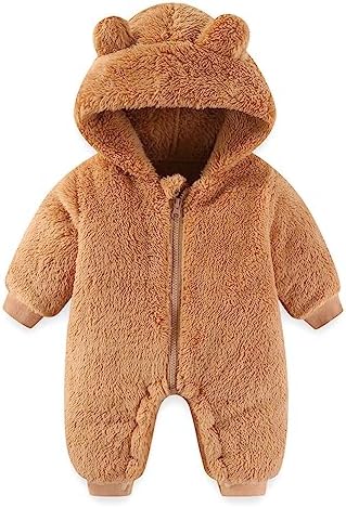 Newborn Baby Bear Outfit Suit Girls Boys Fleece Jumpsuit Romper Hooded Winter Snowsuit Clothes
