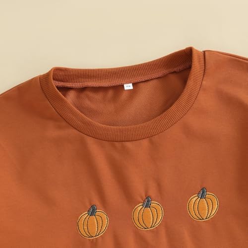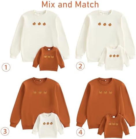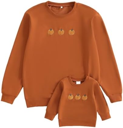 Halloween Mommy and Me Outfit Pumpkin Embroidered Long Sleeve Crewneck Sweatshirts Pullover Top