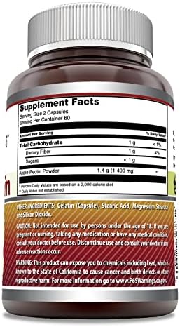 Amazing Formulas Apple Pectin 1400 Mg Supplement | Capsules | Non-GMO | Gluten-Free | Made in USA (1 Pack | 120 Count)