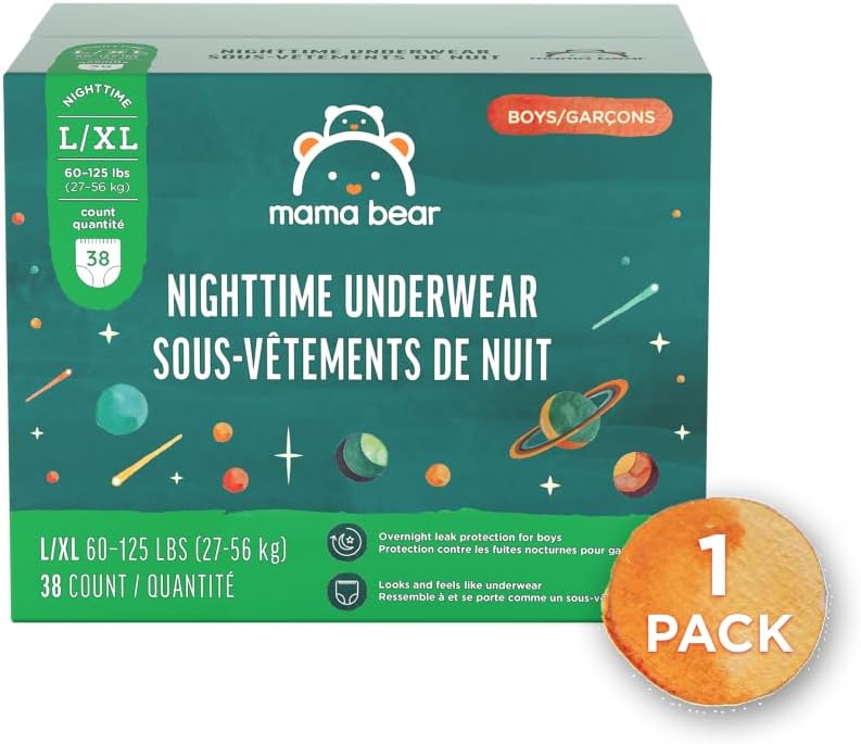 Amazon Brand - Mama Bear Boy's Nighttime Bedwetting Underwear for Overnight Protection, Hypoallergenic, Size L/XL (60-125 lbs), 38 Count, White