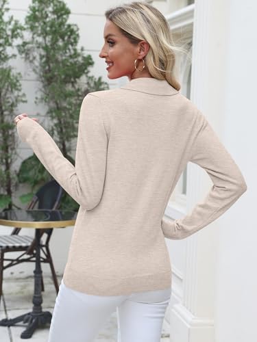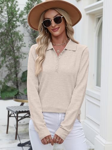 Womens Long Sleeve Polo Sweaters Knit Button Shirt Lightweight Dressy Casual Basic Pullover Tops 2025 Fall Fashion