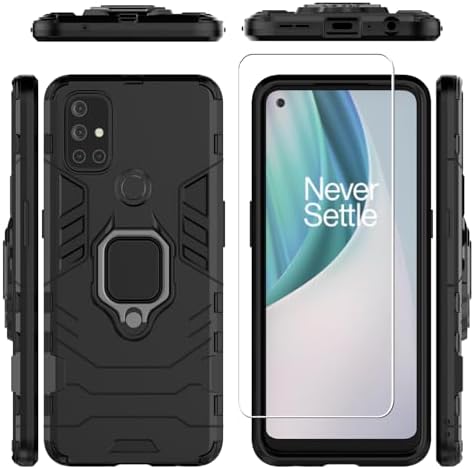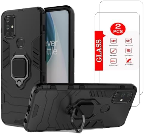 for OnePlus Nord N10 5G Case with [2 Pack] Tempered Glass Screen Protector, Heavy Duty Armor [Military-Grade] Protective,for OnePlus N10 Magnetic Kickstand Car Mount Case Black