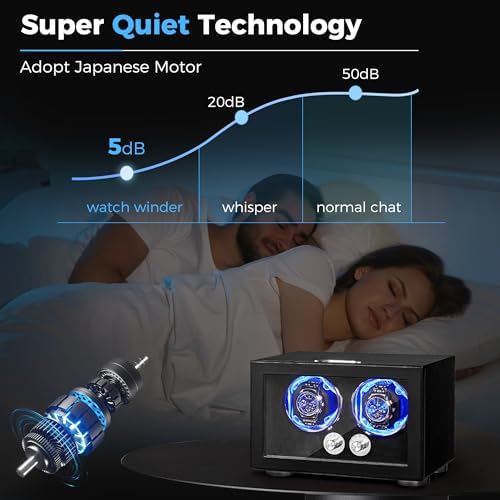 ANWBROAD Watch Winder for Automatic Watches, Double Watch Winder with LED and 4 Rotating Modes, Automatic Watch Winder Super Quiet Motor, Watch Winder Box with Adapter for Man UJWW004B