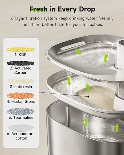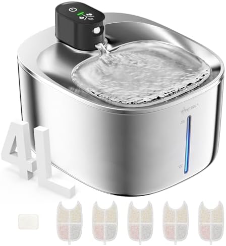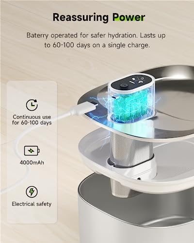 Sponsored Ad - Cat Water Fountain Stainless Steel,152oz/4L Wireless Pet Fountain Battery Operated,Quiet Filtered Pet Water Fountain,Automatic Water Bowl for Cats Dogs with Motion Sensor 5 Filters
