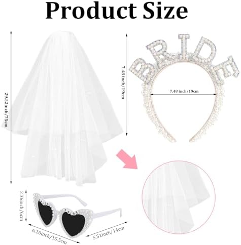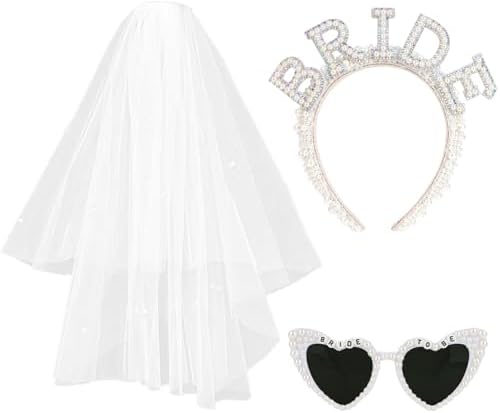 Sponsored Ad - Pearl Headband + Wedding Veil + Bride Sunglasses Set, Bride Veil Heart Sunglasses for Bachelorette Party Decorations Bridal Shower Gifts