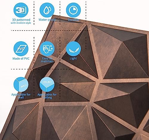 Sponsored Ad - Art3d Decorative 3D Wall Panels in Diamond Design, 12"x12" Antique Copper (33 Pack)