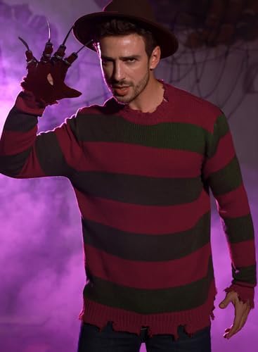 Arvilhill Men's Halloween Freddy Sweater Nightmare Costume Knitted Striped Pullover No Claws M