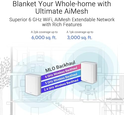 ZenWiFi BT10 Tri-Band WiFi 7 Mesh, 18 Gbps, 6000 sq.ft (2pk), Dual 10G Ports, Security and Parental Controls Included, Smart Home Master SSIDs, 4G & 5G Mobile Tethering