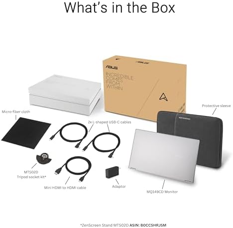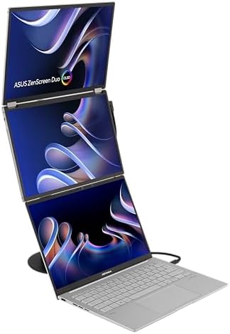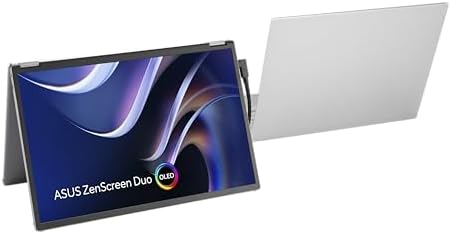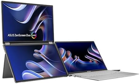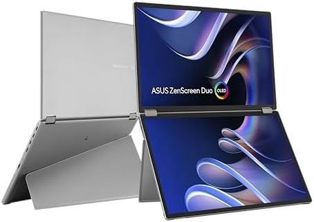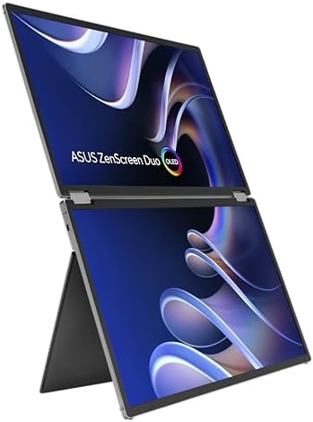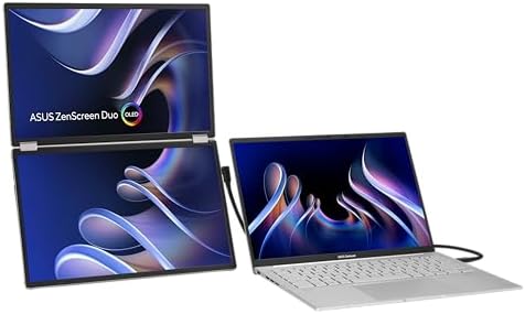 ZenScreen Duo OLED 360° Foldable Portable Monitor (MQ149CD) - Dual 14-inch, 16:10, 1920x1200, DisplayHDR400 True Black, 100% DCI-P3, Delta<2, Dual USB-C, Mini-HDMI, Kickstand, 3 yr Warranty