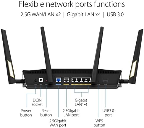 RT-AX88U PRO AX6000 Dual Band WiFi 6 Router, WPA3, Parental Control, Adaptive QoS, Port Forwarding, WAN aggregation, lifetime internet security and AiMesh support, Dual 2.5G Port