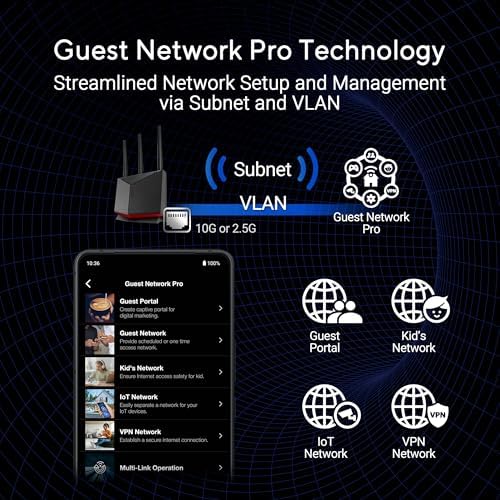 RT-BE86U BE6800 Dual-Band WiFi 7 Router, Supports 4096-QAM, MLO, AI WAN Detection, AiMesh, Subscription-Free Network Security, and Comprehensive VPN Features, Guest Network Pro, Gaming