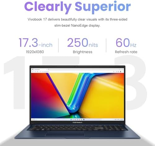 Sponsored Ad - Vivobook 17 Laptop, 17.3" FHD Display, Intel Core i3, 8GB RAM, 512GB PCle SSD, Webcam, Wi-Fi, Bluetooth, HDMI, Windows 11 Home, Quiet Blue, Bundle with PCO Laptop Notebook Cooler